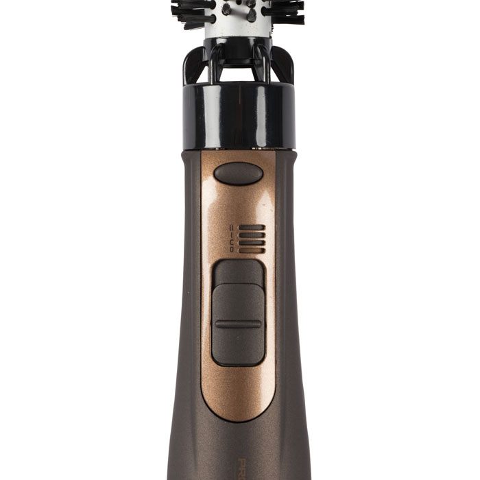 Η Ηλεκτρική Περιστρεφόμενη Βούρτσα Μαλλιών Bamba CeramicCare 5in1 Pro προσφέρει ισχύ 1000 W και διαθέτει 2 ταχύτητες και 3 θερμοκρασίες για απόλυτο έλεγχο κατά το στέγνωμα και το styling των μαλλιών. Η λειτουργία κρύου αέρα είναι ιδανική για το τελικό φινίρισμα, ενώ η κεραμική επίστρωση εξασφαλίζει ολοκληρωμένη προστασία, διατηρώντας τα μαλλιά δυνατά, λεία και υγιή. Η τεχνολογία ιονισμού (Real Ion) βοηθά στην εξουδετέρωση του φριζαρίσματος, προσφέροντας λαμπερά και χωρίς στατικό ηλεκτρισμό μαλλιά. Οι κεφαλές της βούρτσας περιστρέφονται τόσο δεξιόστροφα όσο και αριστερόστροφα, προσφέροντας ευελιξία για διαφορετικά στυλ. Το εργαλείο είναι κατάλληλο για όλους τους τύπους μαλλιών και διαθέτει σύστημα προστασίας από υπερθέρμανση, αντιθερμική άκρη για ασφαλές κράτημα κατά το styling, καθώς και περιστρεφόμενο καλώδιο μήκους 1.8 m για μεγαλύτερη ευκολία χρήσης. Περιλαμβάνει μια ισιωτική βούρτσα με κεραμική επίστρωση, δύο στρογγυλές βούρτσες για όγκο και κυματισμούς, και δύο βούρτσες για μπούκλες (40, 50 mm).