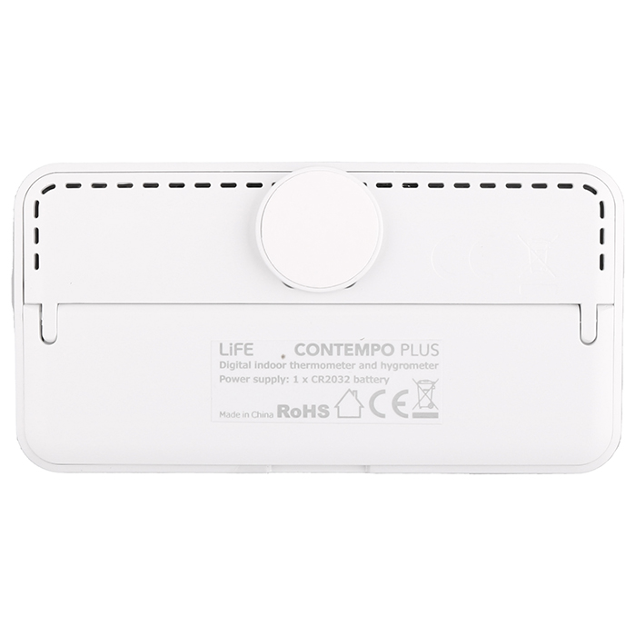 Ψηφιακό θερμόμετρο και υγρόμετρο εσωτερικού χώρου. Κομψό, minimal και σε λευκό χρώμα, είναι ένα τέλειο gadget για κάθε δωμάτιο του σπιτιού σας. Διαθέτει ευκρινή LCD οθόνη και ευανάγνωστα ψηφία, με προβολή ώρας, ημερομηνίας, εσωτερικής θερμοκρασίας και επίπεδο υγρασίας του χώρου σας. Επιπλέον, διαθέτει προβολή υψηλότερης/χαμηλότερης θερμοκρασίας και υγρασίας, καθώς και 5 εικονίδια επιπέδου άνεσης, ανάλογα με το ποσοστό υγρασίας του χώρου. Μπορείτε να επιλέξετε ανά πάσα στιγμή με το πάτημα ενός πλήκτρου μεταξύ δύο θεμάτων κύριας προβολής: – θερμοκρασία και υγρασία με μεγάλα ψηφία και ώρα-ημερομηνία με μικρά ψηφία – ώρα και ημερομηνία με μεγάλα ψηφία και θερμοκρασία-υγρασία με μικρά ψηφία