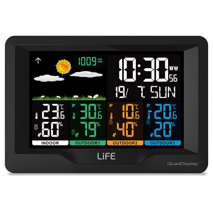 Προβάλλει την θερμοκρασία και την υγρασία 4 διαφορετικών σημείων (κύρια μονάδα + 3 εξωτερικοί αισθητήρες) και την πρόβλεψη καιρού βάσει της βαρομετρικής πίεσης με απεικόνιση με 11 διαφορετικών εικονιδίων! Επιπλέον, διαθέτει λειτουργία αφύπνισης και snooze, ένδειξη ημερήσιας υψηλότερης/χαμηλότερης θερμοκρασίας και απεικόνιση της ώρας. Τέλος, η εσωτερική μονάδα λειτουργεί με το συμπεριλαμβανόμενο τροφοδοτικό ή με μπαταρίες (δεν συμπεριλαμβάνονται) και έχει ενσωματωμένο stand για επιτραπέζια τοποθέτηση.SKU: 818276