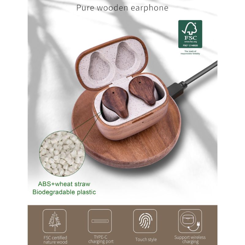 Τα ασύρματα ακουστικά με θήκη BTE-W300ENC συνδυάζουν την ακρίβεια του ήχου με το οικολογικό design. Πρόκειται για ένα εκλεπτυσμένο, εύχρηστο αξεσουάρ, που εκτιμά τόσο την αισθητική όσο και την απόδοση και τον σεβασμό προς το περιβάλλον. Συνδέεται ασύρματα με τη συσκευή σας μέσω Bluetooth και μπορείτε να πραγματοποιείτε κλήσεις handsfree με το ενσωματωμένο μικρόφωνο στα ακουστικά. Eπιπλέον, η τεχνολογία ENC είναι σχεδιασμένη για να μειώνει κάθε εξωτερικό θόρυβο κατά τη διάρκεια της ακρόασης μουσικής ή της τηλεφωνικής επικοινωνίας, ενώ η λειτουργία NTC (Negative Temperature Coefficient) προστατεύει τα ακουστικά από υπερθέρμανση ή υπερφόρτιση. Απολαμβάνετε έως και 6 ώρες συνεχούς αναπαραγωγής μουσικής και 10 ώρες αναμονής, ενώ μπορείτε να φορτίσετε τη μονάδα βάσης ενσύρματα μέσω καλωδίου Type-C και ασύρματα. Tόσο η θήκη όσο και τα ακουστικά είναι κατασκευασμένα από bamboo, προσφέροντας μία φρέσκια και φιλική προς το περιβάλλον προσέγγιση, πιστοποιημένη με FSC. Η υψηλής ποιότητας κατασκευή τους διασφαλίζει όχι μόνο την αντοχή αλλά και την αισθητική ενός προϊόντος το οποίο σέβεται την φύση.