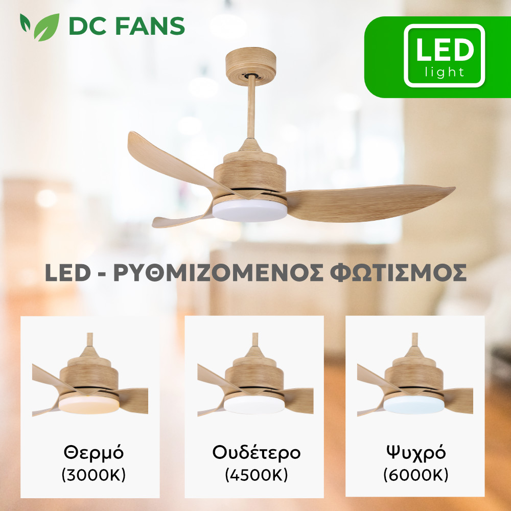 Ο Telemax Levantes 46-YJ356 διαθέτει ρυθμιζόμενo φωτισμό LED 24W, με δυνατότητα επιλογής ανάμεσα σε τρεις θερμοκρασίες φωτός ( θερμό, ουδέτερο και ψυχρό ) και 7 επίπεδα έντασης φωτισμού για να προσαρμόζεται στις ανάγκες και τη διάθεση του χρήστη. Το τηλεχειριστήριο που περιλαμβάνεται, προσφέρει ευκολία στη χρήση, επιτρέποντάς σας να ελέγχετε τις λειτουργίες του ανεμιστήρα από απόσταση. Με 6 επίπεδα ταχύτητας, μπορείτε να ρυθμίσετε την ένταση του αέρα ανάλογα με τις προτιμήσεις σας, ενώ η λειτουργία αντιστροφής εξασφαλίζει την ανακύκλωση του ζεστού αέρα τον χειμώνα, καθιστώντας τον ανεμιστήρα κατάλληλο για χρήση όλο τον χρόνο.