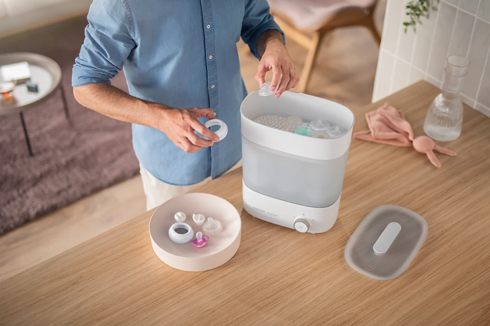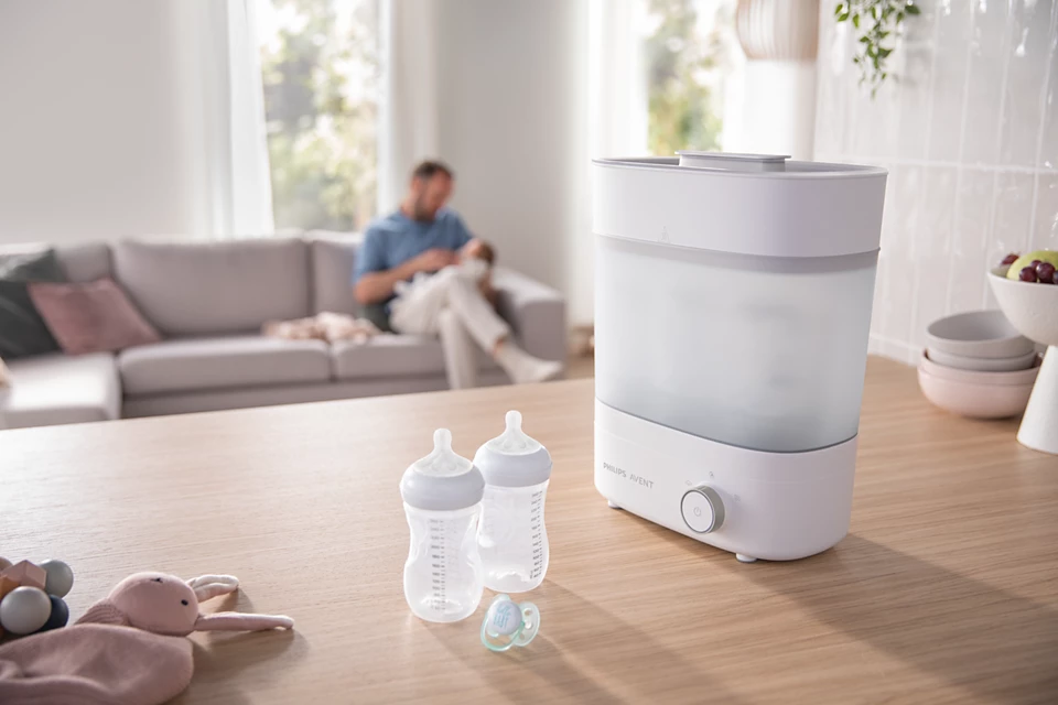 Αποστειρώστε έως και έξι μπιμπερό, μαζί με τα εξαρτήματά τους, σε μόλις 10 λεπτά. Ο διακριτικός αλλά ευρύχωρος αποστειρωτής Advanced εξασφαλίζει γρήγορη και αποτελεσματική αποστείρωση, καθώς εξουδετερώνει το 99,9% των βλαβερών μικροβίων* για να είστε ήσυχοι σε κάθε τάισμα.
