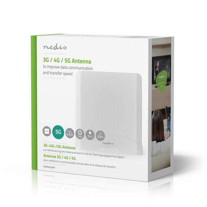 Κεραία 5G/4G/3G/GSM για την ενίσχυση της επικοινωνίας και της αύξησης της ταχύτητας μεταφοράς δεδομένων μέσω σήματος 5G/4G/3G και GSM, χρησιμοποιώντας τετραπλή μπάντα συχνοτήτων. Η κεραία είναι εξοπλισμένη με δύο καλώδια 2,5 μέτρων, με μηδαμινές απώλειες ώστε να εξασφαλίζεται η υψηλής ποιότητας λήψη σήματος. Μπορεί να τοποθετηθεί σε εσωτερικό ή εξωτερικό χώρο για να είναι καλύτερη η λήψη σήματος.