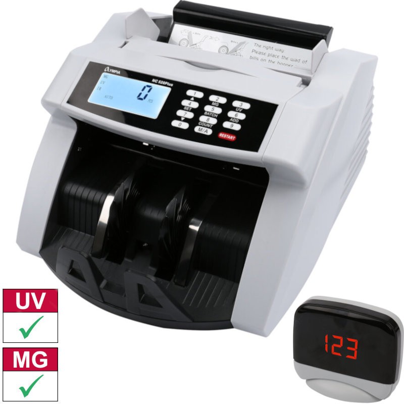Μετρητής χαρτονομισμάτων ανιχνευτής πλαστών χαρτονομισμάτων 2 αισθητήρων με εξωτερική LED οθόνη. Ελέγχει τη γνησιότητα των χαρτονομισμάτων και εμφανίζει το πλήθος τους. Με τη λειτουργία batch ανιχνεύει – καταμετρά προκαθορισμένο ποσό.