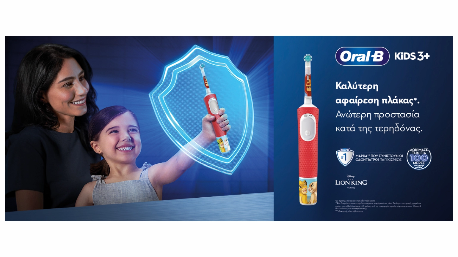 Η Oral-B είναι η #1 μάρκα* ηλεκτρικής οδοντόβουρτσας που συνιστούν οι οδοντίατροι σε όλο τον κόσμο**. Όλα μας τα σχέδια στις ηλεκτρικές οδοντόβουρτσες είναι εμπνευσμένα από τους οδοντιάτρους για να χαρίσουν στο παιδί έναν απαλό και αποτελεσματικό καθαρισμό, σε κάθε στάδιο της ανάπτυξης του.
