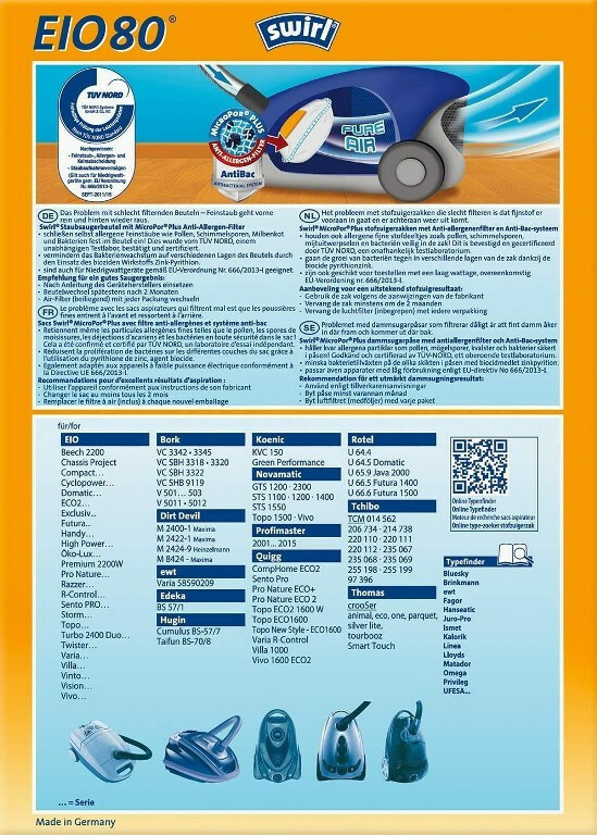- Για EIO: Beech 2200, Chassis Project, Compact, CycloPower, Domatic, ECO2, Exclusiv, Futura, High Power, Oko-lux, Premium 2200w, Pro Nature, Razzer, R-Control, Sentro-Pro, Storm, Topo, Turbo 2400 Duo, Twister, Varia, Villa, Vinto, Vision, Vivo