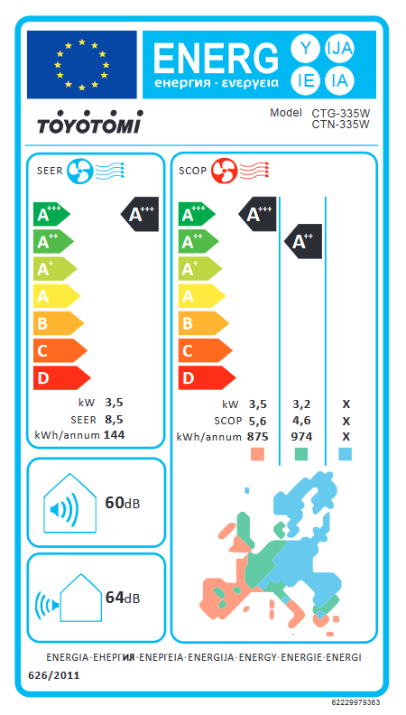 - Ενεργειακή Κλάση Θέρμανσης Θερμότερης Εποχής: A+++