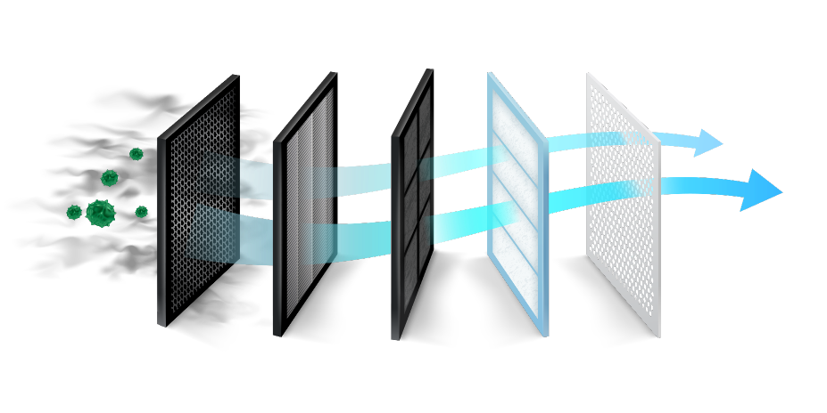 Τα πολλαπλά φίλτρα καθαρισμού του αέρα των κλιματιστικών Toyotomi διατηρούν και ενισχύουν την καθαρή και υγιεινή ατμόσφαιρα του χώρου σας. Το προηγμένο φίλτρο τριπλής δράσης HEPA, Silver Ion & Biology sterilization, απομακρύνει από τον αέρα ιούς, μικρόβια, γύρη, καπνό και δυσάρεστες οσμές, ώστε να αποφεύγονται ασθένειες και αλλεργίες. Και η προστασία της καθαρής ατμόσφαιρας του χώρου σας ενισχύεται ακόμα περισσότερο με το φίλτρο Active Carbon και το προ φίλτρο υψηλής πυκνότητας.