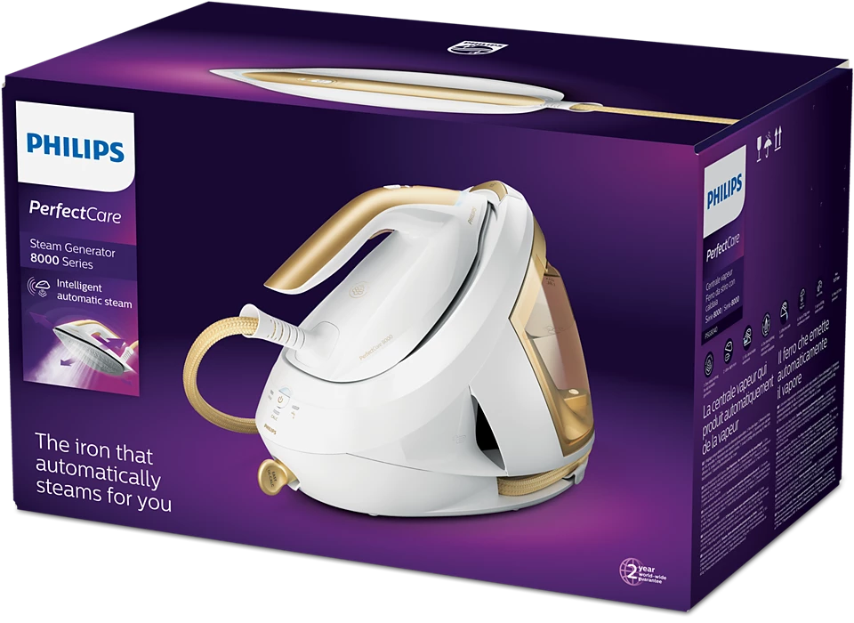 Η σειρά PerfectCare 8000 προσφέρει πανεύκολο σιδέρωμα με τη νέα μας τεχνολογία αισθητήρα κίνησης DynamiQ technology, επιτρέποντας το κάθετο και το οριζόντιο σιδέρωμα με αυτόματο ατμό.