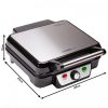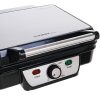 Τοστιέρα – grill με δοχείο για απομάκρυνση του λίπους. Η γκριλιέρα διαθέτει ισχύ 1800W και αντικολλητικές πλάκες για εύκολο καθάρισμα. Ανοίγει σε γωνία 180ο μοιρών ώστε να μπορεί να χρησιμοποιηθεί και σαν ψηστιέρα. Ο θερμοστάτης σας επιτρέπει να ψήσετε τοστ, κρέας λαχανικά και άλλα άψογα, χωρίς να τα κάψετε.