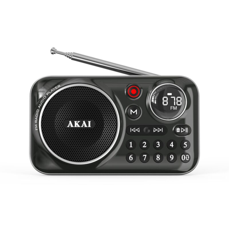 Το φορητό ραδιόφωνο Akai APR-500BK με ισχυρό μονοφωνικό ηχείο, προσφέρει καθαρό και δυνατό ήχο. Διαθέτει Bluetooth έκδοσης V5.3, για να συνδέσετε συσκευές που έχουν την ίδια τεχνολογία όπως κινητό τηλέφωνο και να ακούτε τη δική σας playlist. Επιπλέον, εάν έχετε αποθηκευμένα τραγούδια σε συσκευή USB ή σε κάρτα TF, μπορείτε να τις τοποθετήσετε στις αντίστοιχες θύρες και το ραδιόφωνο θα αναπαράγει αυτόματα τα περασμένα τραγούδια. Με τη λειτουργία της εγγραφής σε USB/TF, υποστηρίζεται η εγγραφή ήχου και φωνής μέσω του ενσωματωμένου μικροφώνου, αλλά και η ηχογράφηση του ήχου που αναπαράγεται από τη μονάδα σε λειτουργία εισόδου Bluetooth και ραδιοφώνου. Πρόκειται για ένα ραδιόφωνο τσέπης με ενσωματωμένο ιμάντα μεταφοράς, βάρους 0.11kg, για να ακούτε τα αγαπημένα σας τραγούδια όπου κι αν βρίσκεστε και εξαιρετικό σήμα, χάρη στην κεραία υψηλής ευαισθησίας. Μία τόσο μικρή συσκευή τελευταίας τεχνολογίας!