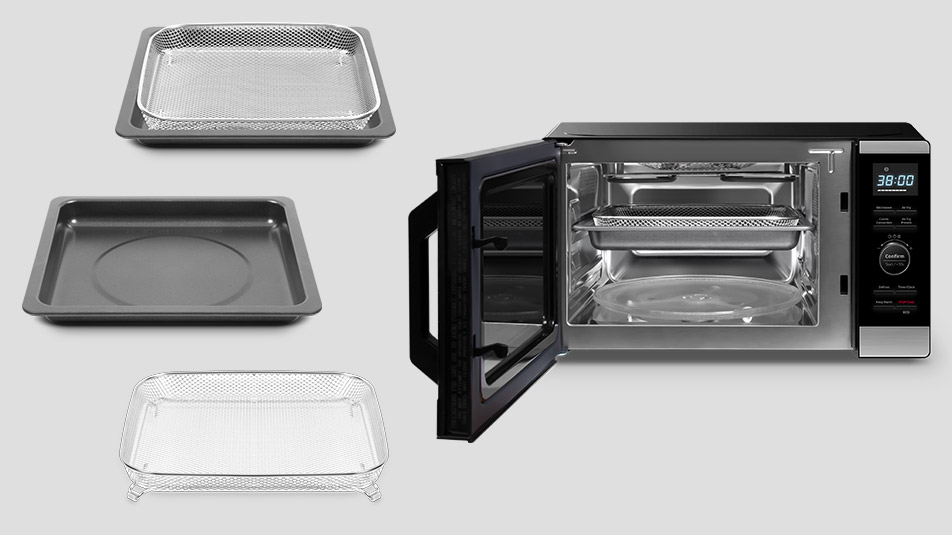Ο φούρνος μικροκυμάτων 2 σε 1 είναι ιδανικός για θέρμανση, μαγείρεμα, ψήσιμο και ψήσιμο στη σχάρα χωρίς περιστρεφόμενο δίσκο. Η μεγαλύτερη επιφάνεια του φούρνου μικροκυμάτων δεν είναι κατάλληλη μόνο για μεγαλύτερα πιάτα, αλλά και για ταψιά και πιο εύκολο καθάρισμα.