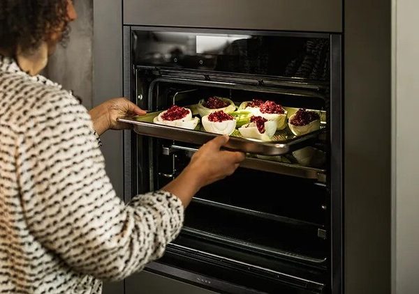 Η πόρτα Slide&Hide® εξαφανίζεται απαλά κάτω από τον φούρνο, χωρίς να μειώνει το μέγεθός του, για να μπορείτε να αλείψετε τα ψητά σας και να δοκιμάσετε εύκολα τα φαγητά σας. Με αυτό τον τρόπο, μπορείτε να ελέγξετε πιο εύκολα το λαχταριστό γεύμα που ετοιμάζετε. Η πόρτα ανασύρεται κάτω από τον φούρνο για εξοικονόμηση χώρου χωρίς κόπο. Απλώς τραβήξτε προς τα πάνω την άνετη, περιστρεφόμενη λαβή, χωρίς να αλλάξετε τη θέση του χεριού σας, για να κλείσετε την πόρτα, όταν τελειώσετε. Η δυνατότητα αυτή είναι ιδανική για μικρές κουζίνες και σεφ που ασχολούνται προσωπικά με τις δημιουργίες τους.
