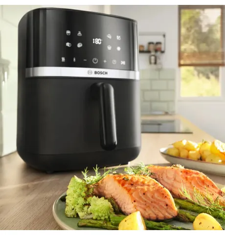 Η φριτέζα αέρος Bosch Σειρά 4 προσφέρει έως 60%* ταχύτερους χρόνους μαγειρέματος, ώστε να μπορείς να ξοδεύεις λιγότερο χρόνο περιμένοντας και περισσότερο χρόνο απολαμβάνοντας το γεύμα σου. Επιπλέον, ο χρόνος που εξοικονομείς κατά το μαγείρεμα σε βοηθά να μειώσεις την κατανάλωση ενέργειας έως και 70%*.
