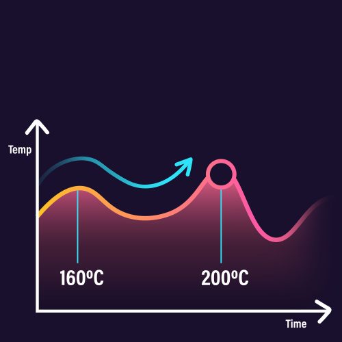Με τη λειτουργία δυναμικής διακύμανσης θερμοκρασίας, η φριτέζα προσαρμόζει τη θερμοκρασία και το είδος του φαγητού κατά τη διάρκεια του μαγειρέματος για τέλειο αποτέλεσμα. Για παράδειγμα, κατά το ψήσιμο σνίτσελ, τα πρώτα 2/3 του χρόνου διατηρούνται στους 160°C για τέλειο μαγείρεμα στο εσωτερικό, ενώ ο υπόλοιπος χρόνος αυξάνεται αυτόματα στους 200°C για τραγανή και χρυσαφένια κρούστα.