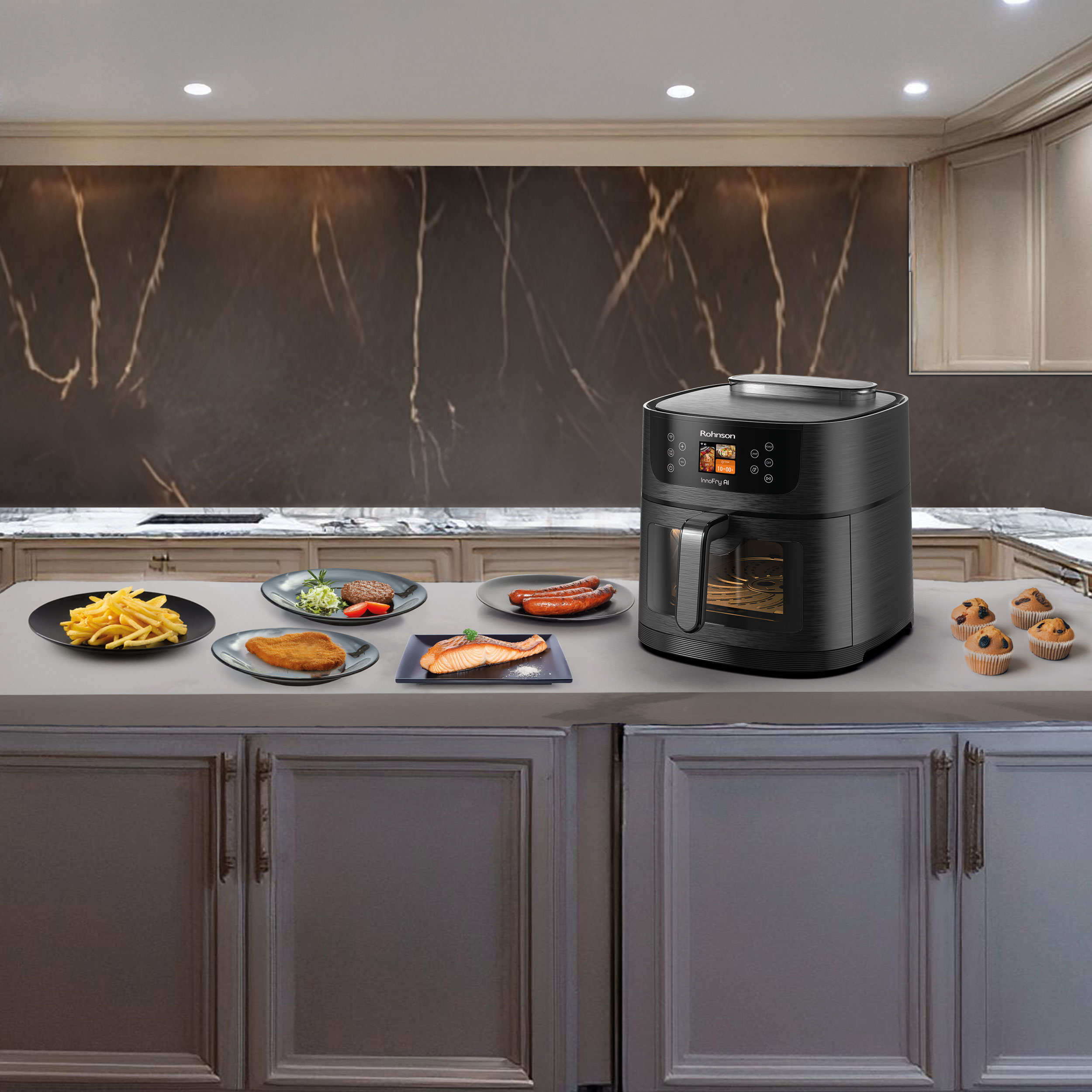 Απογειώστε την κουζίνα σας με την πιο προηγμένη φριτέζα αέρος της Rohnson InnoFry AI R-2884 και απολαύστε άψογα μαγειρεμένα γεύματα με την άνεση της τεχνολογίας AI!