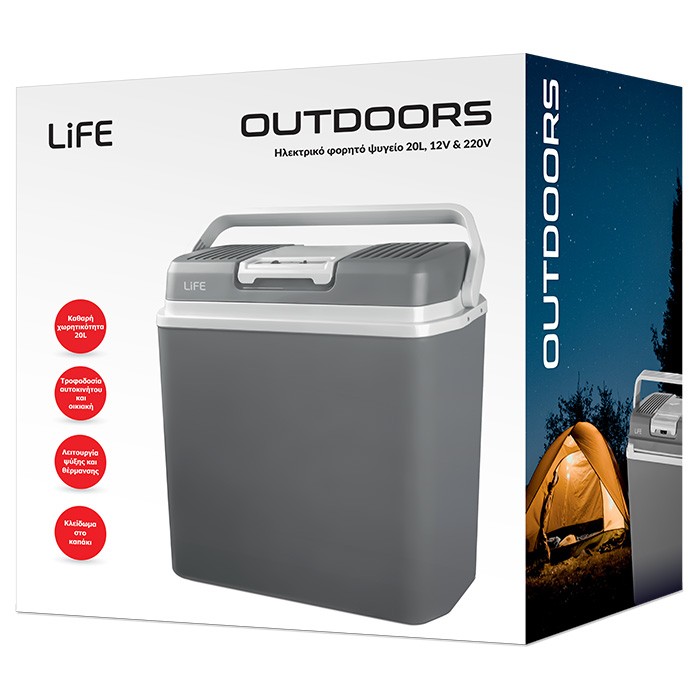 Το νέο ηλεκτρικό φορητό ψυγείο LIFE Outdoors, ενεργειακής κλάσης E, είναι κατάλληλο για ψύξη έως και 13 βαθμούς κάτω από την θερμοκρασία περιβάλλοντος, αλλά και για διατήρηση θερμότητας. Είναι ιδανικό για κάμπινγκ, ταξίδια και εξωτερικές δραστηριότητες! Διαθέτει πτυσσόμενη λαβή για εύκολη μεταφορά που λειτουργεί και ως κλείδωμα. Επιπλέον, οι συμπαγείς του εξωτερικές διαστάσεις, το καθιστούν βολικό στην μεταφορά του, ακόμη και σε μικρά αυτοκίνητα.