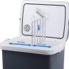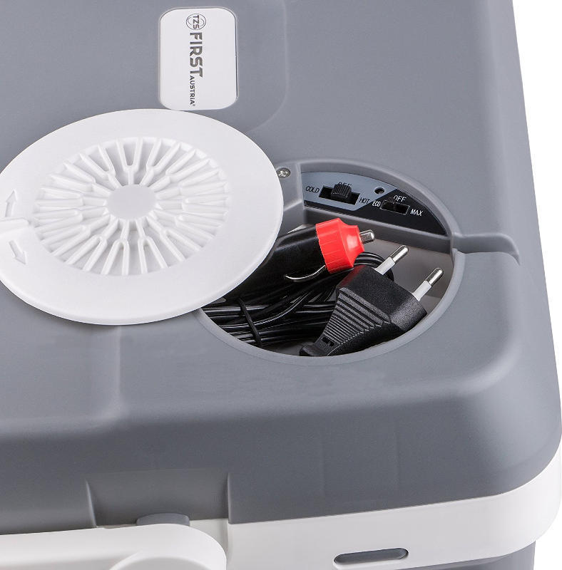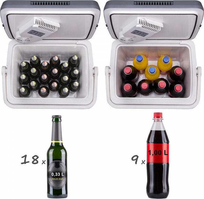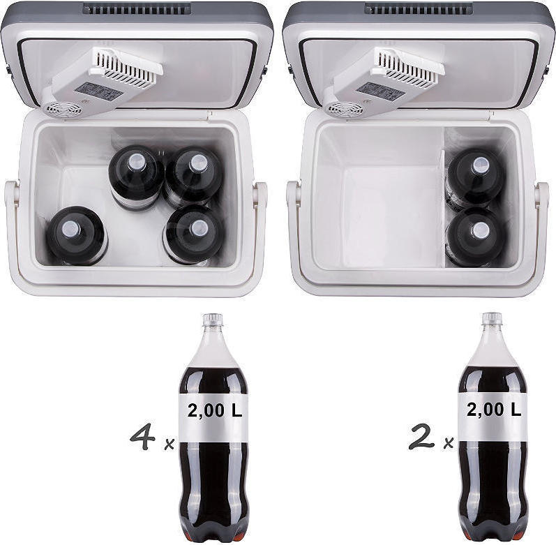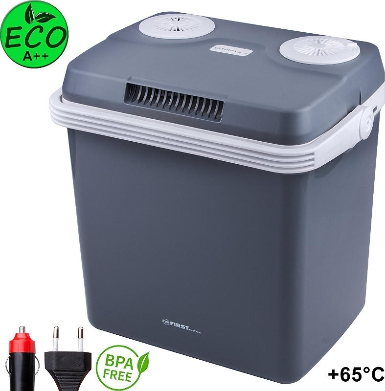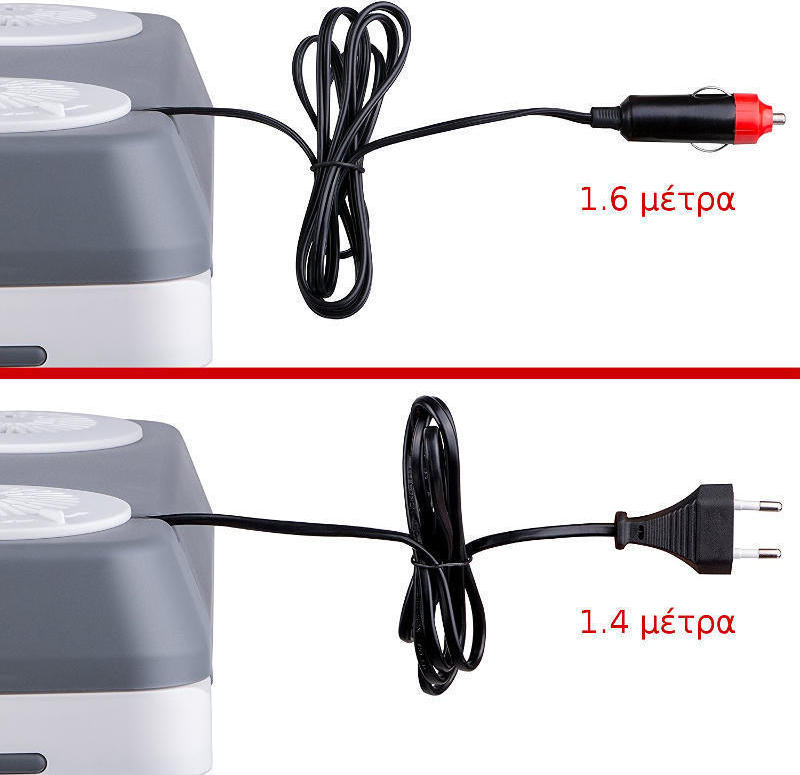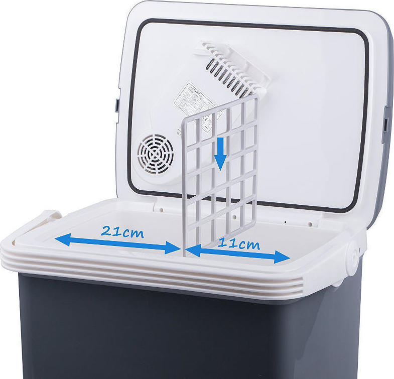 Φορητό ψυγείο θερμαντήρας 32 λίτρων. Το ηλεκτρικό φορητό ψυγείο με δυνατότητα ψύξης μέχρι και 18οC κάτω από τη θερμοκρασία του περιβάλλοντος και θέρμανσης μέχρι 65οC και θα λύσει όλες τις ανάγκες μεταφοράς τροφίμων και ποτών που έχετε. Μπορεί να συνδεθεί τόσο σε πρίζα σπιτιού όσο και στον αναπτήρα του αυτοκινήτου και θα κρατήσει ότι χρειαστείτε ζεστό ή κρύο, ανάλογα με την επιλογή που θα κάνετε. Έχει χωρητικότητα 32 λίτρων και το σχήμα του είναι κατάλληλο για να χωράει μπουκάλια όρθια και το χώρισμα τα κρατάει στη θέση τους. Το ειδικό χώρισμα σας επιτρέπει να τοποθετείτε και να μεταφέρετε με ασφάλεια ακόμα και μικρά δοχεία χωρίς το φόβο ότι θα αναποδογυρίσουν. Έχει ενεργειακή κλάση Α++ και η λειτουργία ECO το κάνει ακόμα πιο οικονομικό.