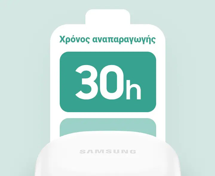 Μικρά σε μέγεθος, αλλά ισχυρά. Απενεργοποιήστε τη λειτουργία ANC και απολαύστε μπαταρία που διαρκεί έως και 30 ώρες με μία μόνο φόρτιση, έτσι ώστε να φτάνει για τη μεγάλη σας λίστα αναπαραγωγής τραγουδιών, τα podcast ή τα βίντεο στα μέσα κοινωνικής δικτύωσης καθ’ όλη τη διάρκεια της ημέρας.