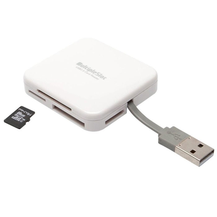 Το ALL IN ONE card reader της PNY είναι μια εύκολη και πάντα εύχρηστη επιλογή για τους χρήστες smartphone/tablet που αναζητούν έναν απλό τρόπο γρήγορης και εύκολης μεταφοράς αρχείων (φωτογραφίες, βίντεο). Με υποδοχές για SD, SDHC, SDXC, MicroSD, MicroSDHC, MicroSDXC, Mini SD, MiniSDHC, Memory Stick Pro, Memory Stick Pro Duo, Memory Stick M2, MMC, RS-MMC, xD και CompactFlash, αποτελεί την ιδανική λύση για γρήγορη και αποτελεσματική μεταφορά δεδομένων. Διαθέτει ενσωματωμένο καλώδιο USB 2.0.