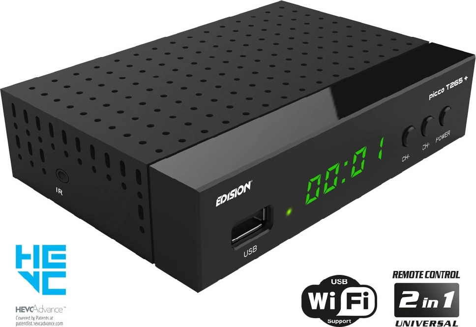 Ο EDISION PICCO T265 είναι ένας σύγχρονος Επίγειος Ψηφιακός αποκωδικοποιητής H.265 HEVC 10 Bit, Full High Definition DVB-T2, με εξελιγμένη περιήγηση μενού και αναβαθμισμένη συνολική εμπειρία χρήστη. Διαθέτει USB WiFi Support για εφαρμογές Ίντερνετ, οθόνη LED-display 4 ψηφίων, πλήκτρα ON/OFF και καναλιού +/- στην μπροστινή πλευρά, δίπλα στην οθόνη καθώς και νέα αναλογία απεικόνισης μενού όταν συνδέεται με SCART σε παλαιότερες χρονολογικά τηλεοράσεις τύπου CRT. Μέσα στην εργοστασιακή συσκευασία του, σας προσφέρει Universal Τηλεχειριστήριο 2-σε-1, για χειρισμό του δέκτη και τεσσάρων (4) λειτουργιών LG/SAMSUNG τηλεοράσεων, οι οποίες λειτουργίες είναι και ελεύθερα προγραμματιζόμενες! Διαθέτει PVR λειτουργίες και θύρα εξωτερικής IR μονάδας για να συνδέετε καλώδιο Jack-σε-IR και να έχετε τον δέκτη “αόρατο”! Ο καλύτερος τηλεοπτικός σας φίλος, τώρα με περισσότερα πλεονεκτήματα απο την EDISION.