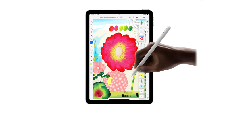 iPad Air. Πετάει. Το iPad Air 11 ιντσών είναι εξοπλισμένο με την υπερδύναμη του εξαιρετικά γρήγορου M3 chip της Apple. Διαθέτει μια εκπληκτική οθόνη Liquid Retina και μπροστινή κάμερα 12MP Center Stage για ακόμα καλύτερες βιντεοκλήσεις. Επιπλέον, συνδυάζεται με το Apple Pencil Pro, το Magic Keyboard και το Smart Folio για να εκτελείς πολλαπλές διεργασίες, να μελετάς, να εργάζεσαι, να παίζεις και να δημιουργείς όπου κι αν βρίσκεσαι.