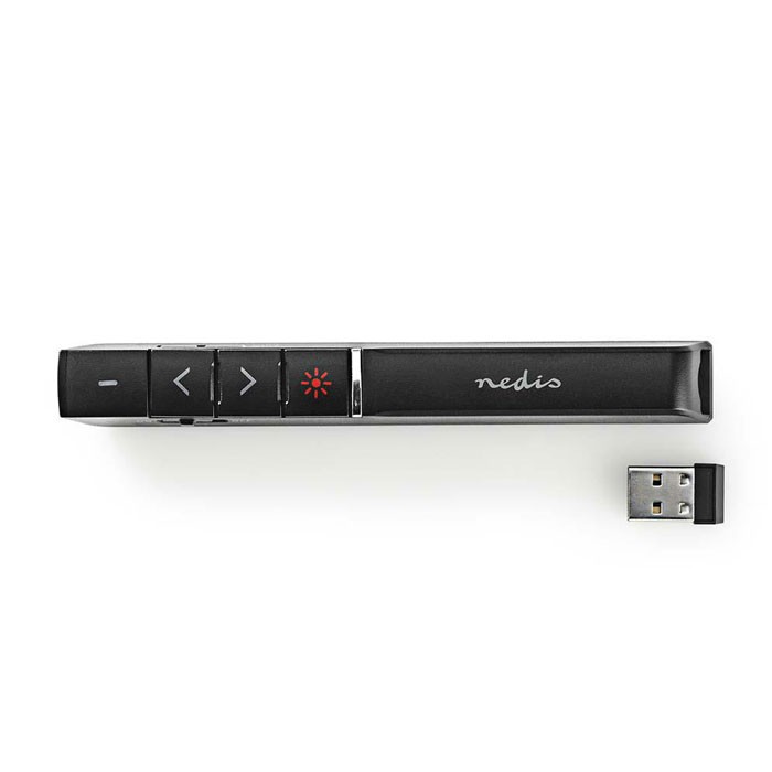 Κάντε πιο εύκολα τις παρουσιάσεις σας, με το ασύρματο Presenter της NEDIS. Απλά συνδέστε το με τον υπολογιστή σας (χρησιμοποιώντας το USB που παρέχεται). Λειτουργεί ασύρματα έως και 30 μέτρα και διαθέτει 6 πλήκτρα για να ελέγχετε εύκολα το slideshow από απόσταση. Επίσης, διαθέτει κόκκινο laser με το οποίο μπορείτε να επισημαίνετε συγκεκριμένα σημεία της παρουσίασής σας, κρατώντας την προσοχή του κοινού σας αμείωτη. Τέλος, ο εργονομικός σχεδιασμός του σας βοηθάει να το έχετε μαζί σας, οπουδήποτε και αν χρειαστεί να κάνετε την παρουσίαση.