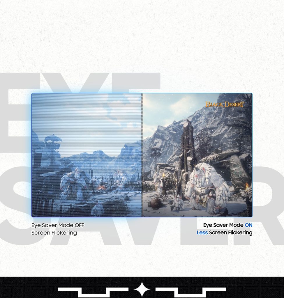 Το Eye Saver Mode βοηθάει το μπλε φως, ώστε να κρατηθούν τα μάτια σας άνετα όταν παίζετε για μεγάλες περιόδους. Το Odyssey G3 επίσης βοηθάει με το ενοχλητικό και κουραστικό τρεμόπαιγμα της οθόνης, έτσι ώστε να μπορείτε να εστιάσετε βοηθώντας με τους περισπασμούς και την επιβάρυνση στα μάτια.