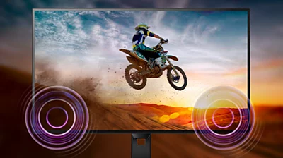 Δύο ηχεία στερεοφωνικού ήχου υψηλής ποιότητας ενσωματωμένα σε μια οθόνη. Στραμμένα προς τα εμπρός, είναι ορατά. Στραμμένα όμως προς τα κάτω, προς τα επάνω ή προς τα πίσω, ανάλογα με το μοντέλο και το σχεδιασμό, δεν είναι ορατά.