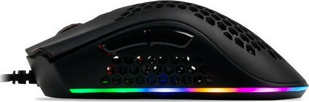 Το NOD IRON FIRE, δεν είναι απλώς ένα full size gaming mouse. Με την εντυπωσιακή εμφάνισή του και τον RGB φωτισμό που προβάλλει μέσα από το σχέδιο του, σας βάζει σε gaming διάθεση πριν καν το αγγίξετε. Με την αντιολισθητική του επιφάνεια που προσφέρει ένα εξαιρετικό grip, τα πρακτικά πλαϊνά πλήκτρα Back & Forward και το πλήκτρο εναλλαγής DPI από 800 έως και 3200DPI, σας δίνει όλα τα εφόδια για να κερδίσετε κάθε μάχη. Την gaming εικόνα συμπληρώνει το υφασμάτινο “braided” καλώδιο σύνδεσης USB σε μαύρο stealth χρώμα, για επιπλέον αντοχή στην χρήση. Τέλος, με το πλήκτρο επιλογής φωτισμού, μπορείτε να επιλέξετε το μοτίβο και το χρώμα φωτισμού που θέλετε ανά πάσα στιγμή, για μια πιο εξατομικευμένη εμφάνιση.