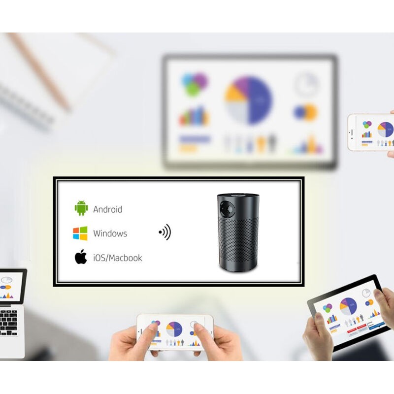 Προβολέας με μικρές διαστάσεις και μεγάλες δυνατότητες ώστε να γίνει ένας φορητός και ευέλικτος τρόπος να απολαμβάνετε τις αγαπημένες σας ταινίες. Με μικρό βάρος, 424 γραμμάρια, και τις συμπαγείς διαστάσεις του, χωράει σε οποιαδήποτε τσάντα και μπορεί να χρησιμοποιηθεί οπουδήποτε. Είτε στο σπίτι είτε στο γραφείο: Χάρη στον φακό με αναλογία ρίψης 1,2:1, επιτυγχάνει διαγώνιο εικόνας 80 ιντσών από απόσταση μόλις 210 cm και είναι κατάλληλος για κάθε δωμάτιο. Ο προβολέας με δυνατότητα 3D με ένα εύκολο στη χρήση App Center για άμεση πρόσβαση στα πολυμέσα, σας επιτρέπει την ασύρματη προβολή από συσκευές iOS ή Android. Μπορείτε να έχετε πρόσβαση σε ταινίες, σειρές, μουσική ή παιχνίδια ασύρματα, χωρίς την ακαταστασίας των καλωδίων και να τα προβάλλετε απρόσκοπτα στην οθόνη. Το έξυπνο σύστημα αυτόματης εστίασης σε συνδυασμό με τη διόρθωση κλειδιού 2 αξόνων 4 σημείων εξασφαλίζει πάντα μια ευκρινή εικόνα χωρίς παραμόρφωση.