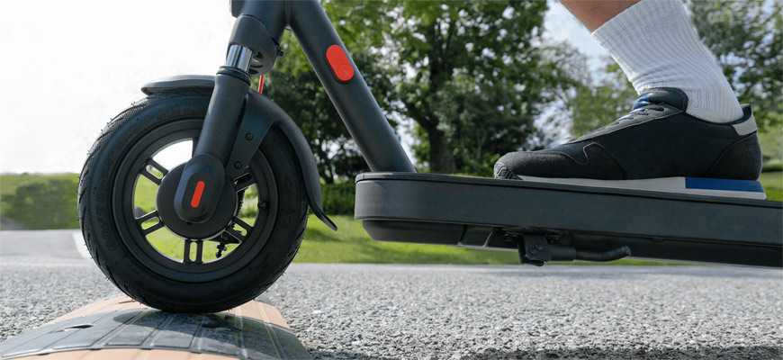 Τα ελαστικά 10 ιντσών χωρίς σωλήνες μειώνουν την αντίσταση κύλισης, προσφέροντας καλύτερη σταθερότητα στις στροφές και αυξημένη διάρκεια ζωής της μπαταρίας. Παράλληλα, εξασφαλίζουν βελτιωμένη απορρόφηση κραδασμών, για άνετη και ασφαλή οδήγηση.