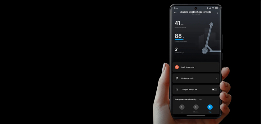 Μέσω της εφαρμογής Xiaomi Home, μπορείς να παρακολουθείς την κατάσταση του σκούτερ, να ελέγχεις τη μπαταρία και να προσαρμόζεις τις ρυθμίσεις. Έτσι, έχεις πλήρη έλεγχο των διαδρομών σου, απολαμβάνοντας μια εξατομικευμένη εμπειρία οδήγησης.