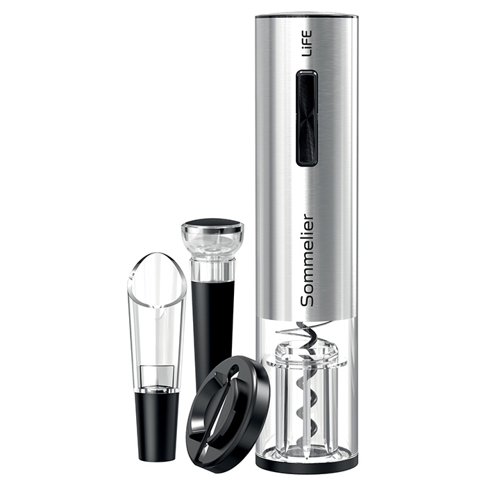 - Επιπλέον αξεσουάρ: Κόφτης μεμβράνης που καλύπτει τον φελλό, 2 σε 1 Αντλία αφαίρεσης του αέρα και πώμα, Πώμα ομαλής ροής του κρασιού