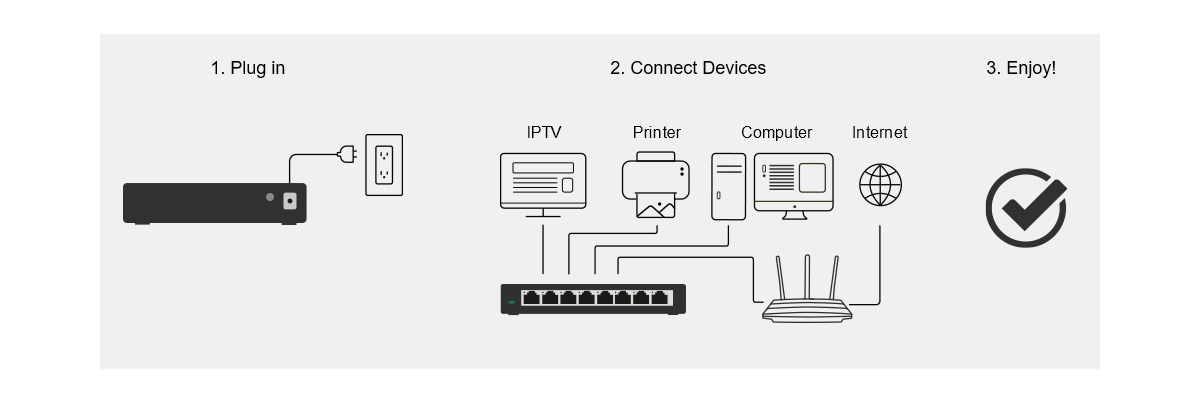 Ο σχεδιασμός plug-and-play διευκολύνει την ανάπτυξη, δεν απαιτείται τεχνικός. Η αυτόματη διαπραγμάτευση σε κάθε θύρα ανιχνεύει την ταχύτητα σύνδεσης μιας συσκευής δικτύου και προσαρμόζεται έξυπνα για να εξασφαλίσει πλήρη συμβατότητα και βέλτιστη απόδοση.