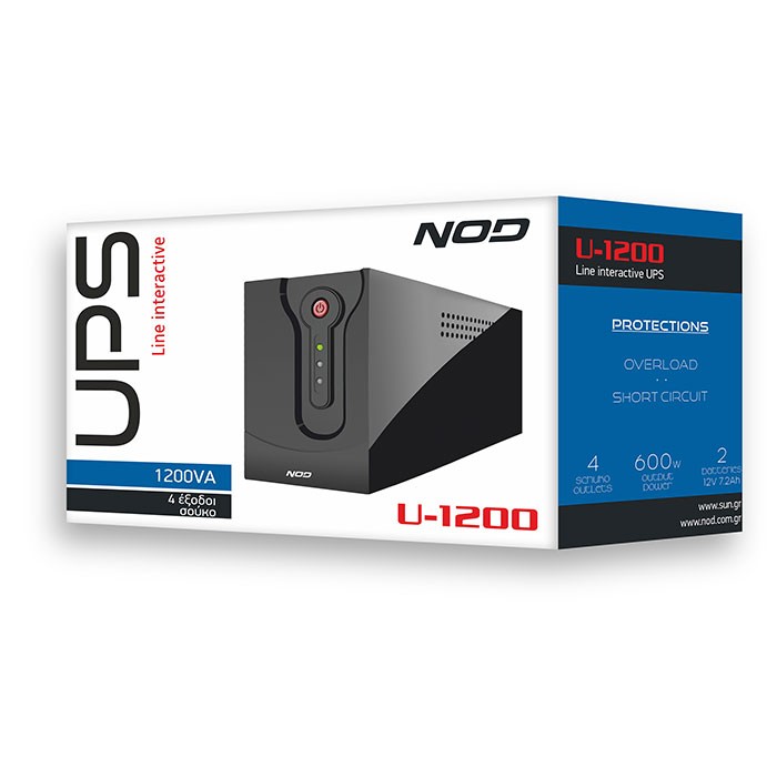 Οι έντονες εναλλαγές τάσης του δικτύου σας αποτελούν το μεγαλύτερο πρόβλημα του υπολογιστή σας και μπορούν να αποβούν καταστροφικές. Ακόμη και μια σύντομη απώλεια ισχύος ή μια στιγμιαία αύξηση μπορεί να καταστρέψει τον εξοπλισμό σας και να καταστρέψει αναντικατάστατα δεδομένα. Το Line Interactive UPS NOD σας παρέχει πλήρη προστασία από τις εναλλαγές τις τάσεις! Προστατεύει από βραχυκυκλώματα, υπερτάσεις, διακοπές ρεύματος, πτώσεις τάσεις και σας επιτρέπει να κλείσετε τον εξοπλισμό σας ή να τερματίσετε τις ενεργές σας εργασίες δίχως άγχος (15-35λεπτά χρόνος backup της μπαταρίας, αναλόγως το φορτίο). Αυτόματη επανεκκίνηση του UPS σε λειτουργία μετά από διακοπή ρεύματος! Σε περίπτωση διακοπής ρεύματος, μόλις επανέλθει το ρεύμα, το UPS θα ξανα-ξεκινήσει τη λειτουργία του αυτόματα. Το UPS NOD είναι η ιδανική λύση για την προστασία του προσωπικού σας υπολογιστή και επίσης για διακομιστές πολυμέσων, σταθμούς εργασίας υψηλής απόδοσης, υπολογιστές γραφείου, οθόνες, εκτυπωτές, μόντεμ, διακόπτες, ασύρματους δρομολογητές, σαρωτές κλπ. Το UPS NOD διαθέτει ισχύ 1200VA (600W) είναι εξοπλισμένο με 2 μπαταρίες NOD LAB 12V 7.2AH, 4 πρίζες σούκο και διαθέτει ενδεικτικές λυχνίες λειτουργίας και χαμηλής μπαταρίας LED. Επίσης διαθέτει ηχητική ειδοποίηση σε περίπτωση χαμηλής μπαταρίας.