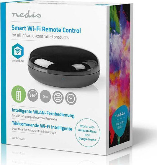 Ιδανικό για να ελέγξτε την τηλεόρασή σας ή το κλιματιστικό σας που ελέγχεται με τηλεκοντρόλ υπερύθρων, μέσω της εφαρμογής Nedis SmartLife. Χρησιμοποιώντας την εφαρμογή Nedis SmartLife μπορείτε να ενεργοποιήσετε το Air Condition πριν φτάσετε στο σπίτι ή να ρυθμίσετε ένα πρόγραμμα για την αυτόματη ενεργοποίηση ή απενεργοποίηση της τηλεόρασής σας. Η ρύθμιση είναι απλή, προσφέροντας συμβατότητα με πολλές μάρκες τηλεοράσεων, κλιματιστικών, ανεμιστήρων και set top boxes. για να επιλέξετε γρήγορα το τηλεχειριστήριό σας. Επιπλέον υπάρχει δυνατότητα χειροκίνητης εκμάθησης οποιασδήποτε άγνωστης συσκευής IR για την υποστήριξη λιγότερο γνωστών εμπορικών σημάτων ή άλλων προϊόντων.