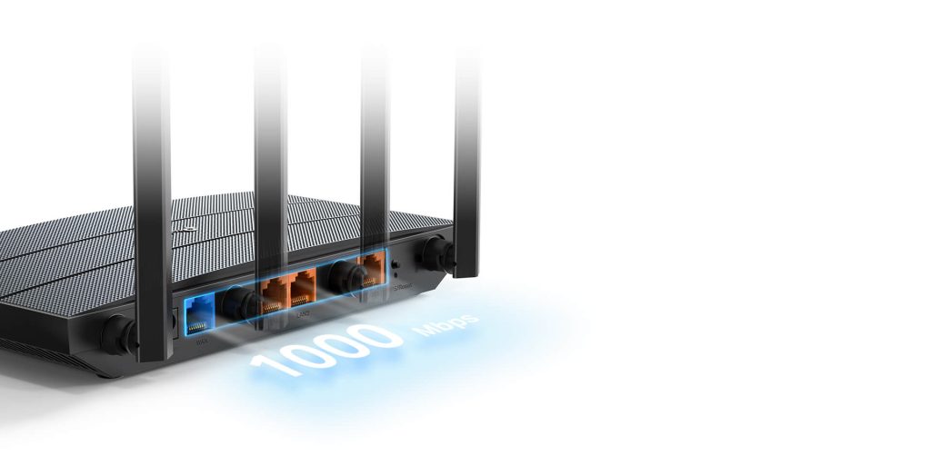 Όλες οι θύρες Ethernet είναι ταχύτητας Gigabit και σας επιτρέπουν να αξιοποιήσετε πλήρως την ταχύτητα ευρυζωνικής σύνδεσής σας έως και 1 Gbps. Συνδέστε τους υπολογιστές, τις έξυπνες τηλεοράσεις και τις κονσόλες παιχνιδιών σας σε μία από τις τρεις θύρες LAN Ethernet Gigabit για γρήγορες και αξιόπιστες ενσύρματες συνδέσεις.